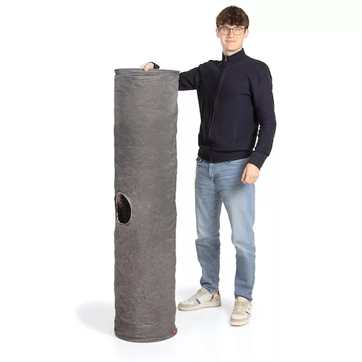 Katte har en medfødt trang til at søge huler – og denne kattetunnel imødekommer netop dette instinkt. Den fungerer både som et trygt skjulested og som det perfekte sted til leg og udforskning. Med en generøs diameter på ca. 35 cm er tunnelen rummelig nok til at to katte kan putte sammen – ideelt til flerkattehjem eller store racer som Maine Coon, Ragdoll og skovkatte.