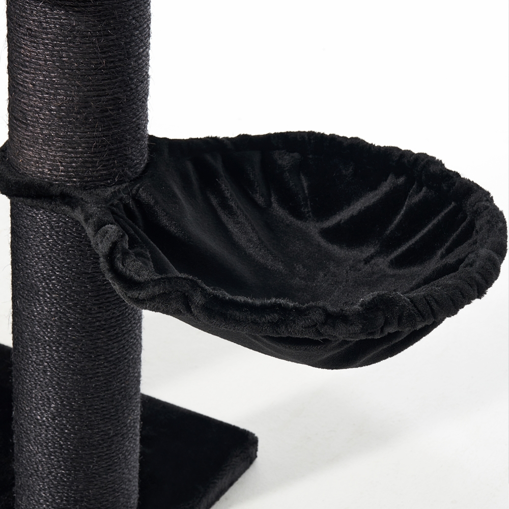 Dette bløde kradsetræ i flere niveauer har en rummelig “puttehule” og flere hævede hvilepladser, der kombinerer komfort med vertikal leg. Det inkluderer sisalomviklede stolper og kradseflader, som tilfredsstiller din kats naturlige behov for at kradse og strække sig. Et hængende tovlegetøj opmuntrer til leg og mental stimulering.